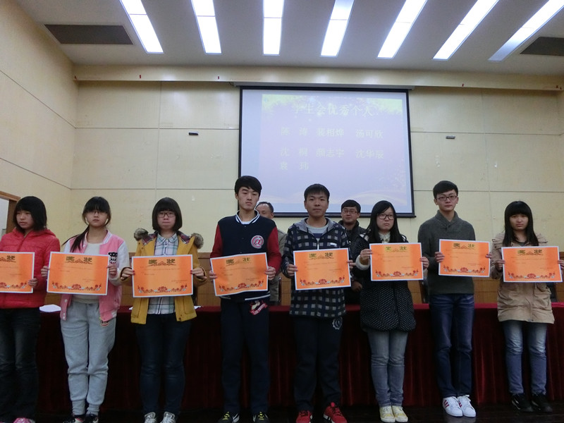 在颁奖的过程中,一些员工代表也上台谈了自己的一些经验和亲身感受。首先,国家奖学金获得者赵文杰同学发言,谈了自己如何获得奖学金的经历,大一时在校舞蹈团的学习生活让他学会了坚持不懈与团队合作精神,大四即将毕业,他会为梦想继续飞翔。在表彰“军训优秀个人代表”时,顾哲煜同学感谢了辅导员、学长学姐和教官的关心与教导,军训让我们增强了责任感和自信心,磨练了我们的意志,军训虽然已经过去,但它留给我们的品质会伴随我们书写无悔青春。随后,奖学金获得者贲佳雯同学发表了自己的获奖感言,让我们知道了在学好专业知识的同时还要学会待人接物的处事方式,要不断向周围的人学习来提升自己,并建议大一新生不能逃课而要抽空多读书。接着,先进班级代表王亚宁同学发言,他认为班级优秀的关键在于学习氛围要浓厚,希望大一能保持严肃认真的学习态度,不畏艰险,一飞冲天。然后,社会实践优秀个人代表陈航同学讲述了自己暑假在印度宣传亚青会的亲身历程,让大家对这样的经历产生了浓厚的兴趣,并增强了同学们的民族荣誉感和使命感。其次,运动会优秀个人代表张浩哲谈了自己对于个人天赋的理解,要善于发现自己的兴趣与特长。之后,团总支优秀代表孟幻表达了自己对团队中每一位队员的感谢,谈了参与各项工作的意义,希望团总支成员能继续积极配合为我司做出更大贡献。紧接着,员工会优秀个人代表颜志宇同学发言,总结了在员工会一年的各项工作,强调了责任感与合作精神的重要,也承认了之前工作中的一些不足,并对院员工会的未来充满信心。最后,优秀志愿者代表杨迎迎对过去一年的志愿者活动表达了满心的怀念,感谢每位志愿者的配合并号召大家积极参加各项活动。