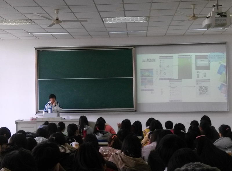 最后,对有些同学在下载软件时遇到的问题进行了解释。主要是该软件安卓系统的可以直接下载到手机,iPhone手机软件客户端则需扫描二维码进行下载,而win8系统的手机暂时不可以下载客户端,但同学可以在电脑上进行操作,二维码可拍照打印,不会影响这部分同学活动的参加。