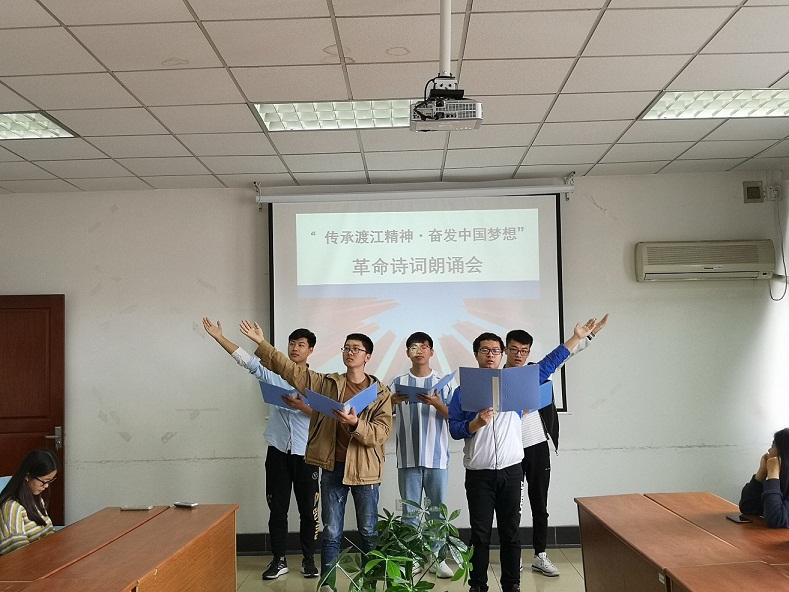 革命诗歌朗诵会首先在波澜壮阔、振奋人心的渡江战役历史解析中展开。随后,金数1701班的班委们带来了诗朗诵《七律·人民解放军占领南京》,朗诵者富有情感的流露深深的感染了在场的同学。同学们踊跃上台朗诵自己所选诗词,展示自己对革命诗词的理解和感受与对革命先烈的缅怀和敬仰。最后,入党积极分子薛佳敏同学倡议大家传承渡江精神,奋发实现中国梦。