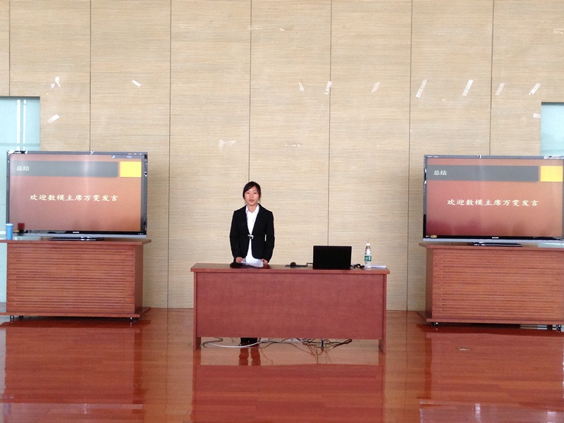 接下来,由数学建模协会主席万雯对接下来一系列的活动进行了简单介绍:数模主题讲座、数模与机器人手拉手、“校园数学寻宝”大赛、数学知识竞赛,并代表数学建模协会全体成员对参加本次开幕式的嘉宾表示衷心的感谢!最后由数学建模协会前任主席陈俏妃对这次的开幕式发表了结语,也预祝了此次数模建设月圆满成功。