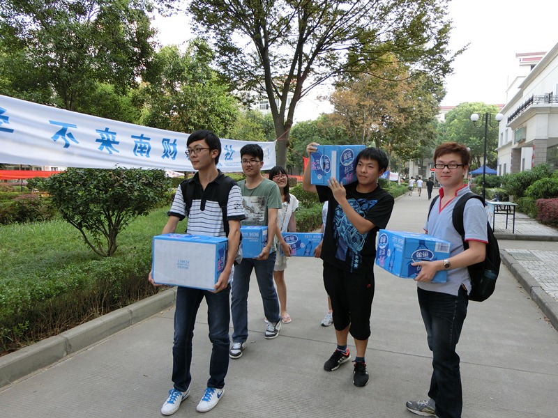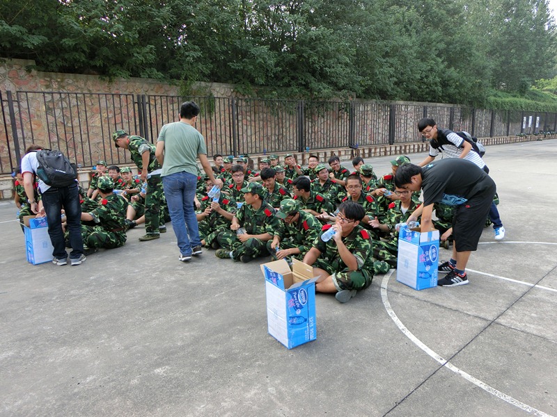 当我司员工会的同学们搬着矿泉水走进军训场地时,大一的学弟学妹们露出了欢乐的笑脸,坐在地上的他们在接过矿泉水的同时也在一直说着谢谢学长学姐。有的孩子拿过水大口大口地喝了起来,有的孩子只是喝了一小口,就满足地擦了擦嘴。他们左右讨论着,前后说笑着,俨然暂时忘却了军训的疲惫。我司员工会副主席沈桐还鼓励同学们坚持军训,客观对待老员工活中可能出现的挫折,并努力去寻找更广阔的天空。