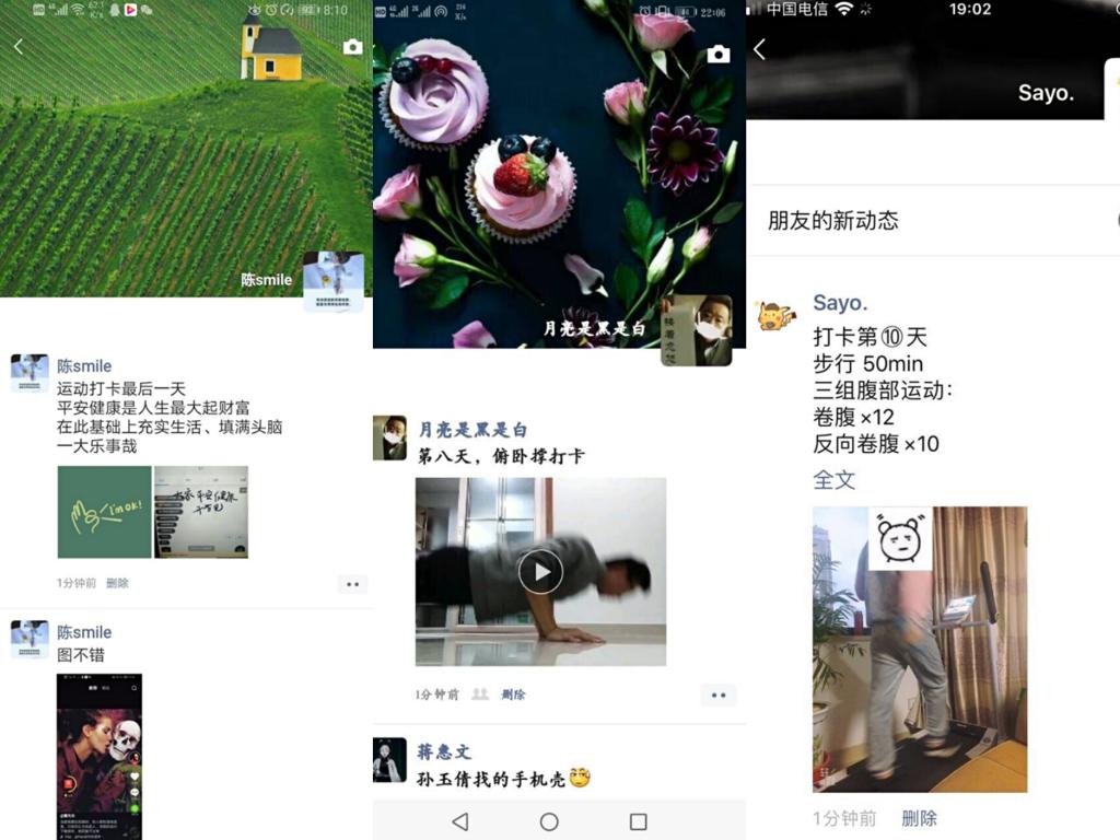 为期十天的打卡活动过程中,员工们积极利用家中的现有条件进行体育锻炼。大多数同学进行了平板支撑、仰卧起坐等简易的有氧运动,以锻炼横腹肌力量提升自我免疫能力;有条件的同学则利用家中跑步机坚持长、短跑;也有同学自学舞蹈,发展兴趣爱好的同时也锻炼了身体、充实了假期。金数1902班徐鸿同学坚持每天长跑,在他看来,强大的免疫力才是抵抗疾病的良药;数学1901班王一茹同学认为运动是一种乐趣,羽毛球是她每天的欢乐源泉;金数1601班朱海涛同学也在运动的过程中锻炼了自己的耐力,提高了自己的生活质量……