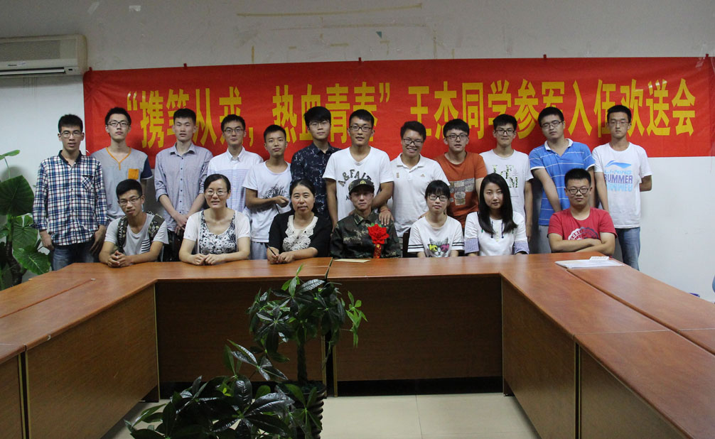 张文文老师向王杰同学表示祝贺,她介绍了学院2016年征兵工作开展的总体情况,希望他到部队后,以国家为重、以人民为重,认真学习、刻苦训练,为学校增光添彩。