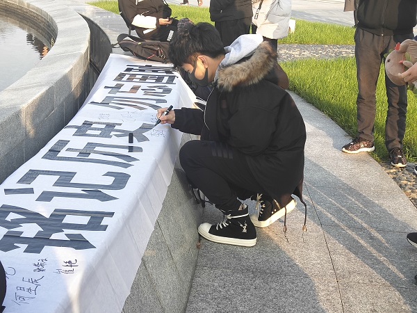 “12·13”,中华民族近代史上最沉重的一页。81年前,南京城破,30多万同胞惨遭日寇杀戮,震惊世界。81年后,南京全城默哀,人们以白花素服,寄托哀思。同学们纷纷在签名横幅上郑重地签上了自己的名字。他们表示,1937年的今日此地,日本侵略者肆无忌惮、毫无人性的屠杀,永远都不能被原谅,更不容篡改。大家一定要勿忘国耻,铭记历史,刻苦学习,奋发有为,为中华民族的伟大复兴而努力奋斗!