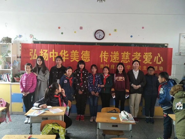 11月2日,我司胡丹丹、卢美丞、顾李暄、朱海涛、韩宇茜等5名同学组成志愿小分队赴摄山星城小学开展感恩教育志愿活动。