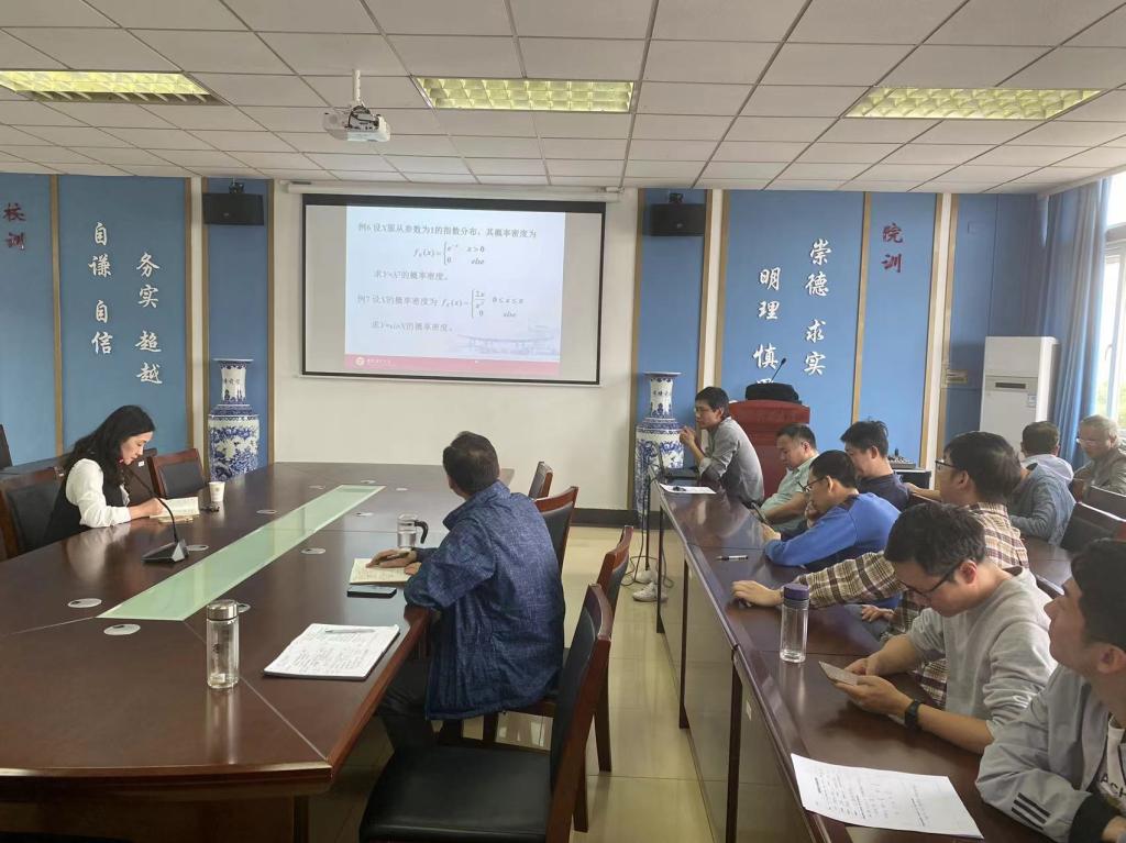 黄老师围绕“概率论与数理统计”课程中随机变量函数的分布章节中的难点重点进行了教学经验分享。他深入浅出地剖析了难点问题,并结合自身教学经验提出了解决方法和教学技巧,受到了在场师生的一致好评。活动中,学院青年教师积极提问,与黄老师进行了深入的教学探讨,进一步丰富了大家的教学理念和方法。学校教学督导石嘉怿教授针对教学内容进行了点评,充分肯定了本次活动的教学效果和组织安排。